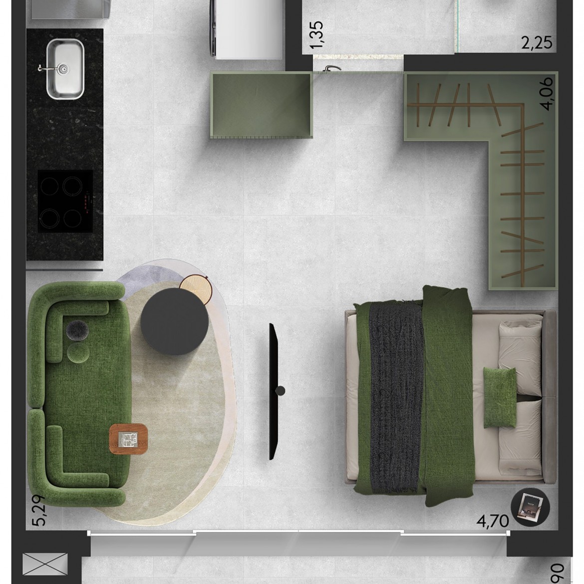QUANTIDADE DE UNIDADES POR ANDAR: 14 Studios por pav. tipo